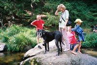 Freistadt August 2004 Christine, Ihre "Kinder" und die 3 Hunde , warteten schon auf der Raststation St. Pölten auf mich und Rocky. Kurz teilte sie mir mit, daß schon einige Hunde vor Ort wären und schon ging los Rtg. Freistadt. Während der ganzen Fahrt, hatte ich schon wieder Angst, daß sich Rocky vielleicht nicht wohlfühlen würde oder eine Rauferei los gehen würdet oder oder oder. Nach vielen Gedanken und ebenso vielen Zigaretten kamen wir dann gut und sicher an. Dann ging alles so schnell Begrüßung, Kinder, Hunde für mich ein Chaos und ehrlich gesagt, weiß ich überhaupt nichts genaueres mehr. Es war einfach toll, wie wir aufgenommen wurden und wie nett und freundlich alle waren. Ja und so war auch Rocky - es klappte alles hervorragend und Rocky und ich fühlten sich "Pudelwohl". Rocky entdeckte die große Liebe in SONY, der sich kaum seiner erwehren konnte und ich hatte alle Hände voll zu tun um Rocky fern zu halten. Aber vergebens. Wo die Liebe hinfällt! Ich war froh, als wir dann endlich Richtung Quartier fuhren und dachte, jetzt kehrt endlich etwas Ruhe ein, doch da hatte ich wohl falsch gedacht. Denn kaum hatten wir die Zimmer bezogen (Kinder mit Tixi und Sony, Christine, ich, Purzel und Rocky) und eine beruhigende Dusche genommen, brach ein ordentliches Gewitter los. Es ging alles sehr schnell, die Trennwand am Balkon fiel um, Purzel und Rocky bekamen es mit der Angst zu tun. Während ich noch mit der Trennwand beschäftigt war, hatte Tixi quer durch's Zimmer "getrüffelt" und Christine mußte dazu schauen, daß sie wieder alles sauber bekommt. Wir entschieden, daß Tixi bei uns im Zimmer bleibt, für den Rest der Nacht. Es donnerte und krachte die ganze Nacht. Rocky und Purzel schliefen eng aneinander gekuschelt neben meinem Bett - und wehe mir, wenn ich meine Hand wegnehmen wollte, da schauten mich beide ganz ängstlich mit großen Knopfaugen an. Wie ich in der Früh aufgewacht bin, fühlte ich mich als hätte mich ein Pferd getreten. Aber nach einem Spaziergang mit 4 Hundis und einem ausgiebigen Frühstück fühlte auch ich mich wieder fit für den Tag. Und oh Wunder, Rocky hatte das Interesse an Sony verloren. Aber leider die große Liebe bei Bruno entdeckt. Nachdem mein alter Herr schon so außer Atem war und ich Angst hatte, daß er einen Herzinfarkt bekommt, zog ich mich bis zum Beginn des Turniers in die Gaststube zurück. Leider begann es dann auch noch zu regnen, sodaß das Turnier nur in gekürzter Fassung ausgetragen wurde. Aber lustig war es allemal. Vorallem das "Leckerli-bzw. Apfelfischen" fand ich ganz toll, da sahen wir die lustigsten Posen und nicht immer ist alles so gelungen wie der eine oder andere wollte. Die Krönung war dann das gemütliche Beisammensitzen und die Preisverleihung. Bärbel hatte alles sehr lieb vorbereitet und darauf geachtet, daß jeder von uns etwas abbekommt. Leider verging die Zeit wie im Flug und was blieb sind tolle Erinnerungen und Fotos. An dieser Stelle nochmals ein DANKE, einfach an Alle für alles. |